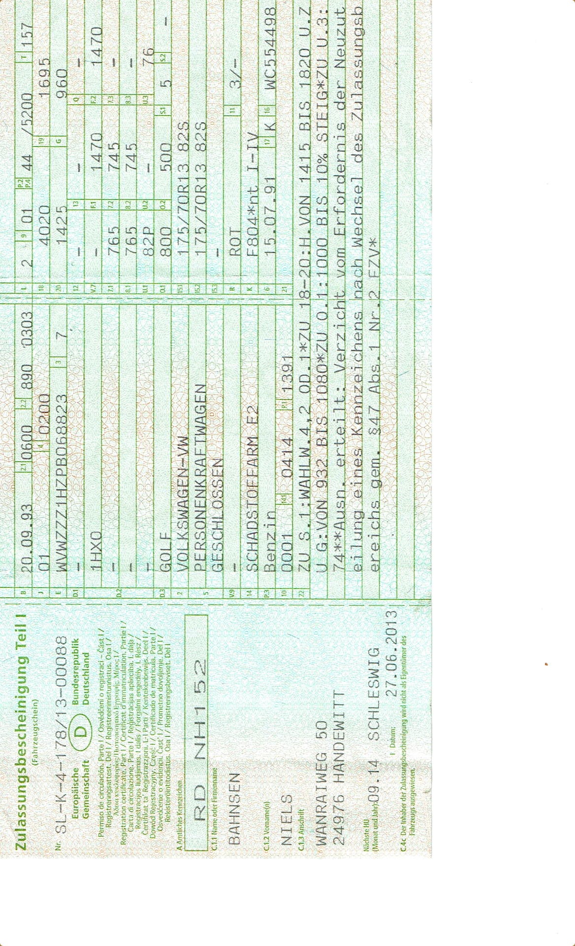VW Golf mrk3 1HX0 1993 44kw det er den første udgave i 1993!!